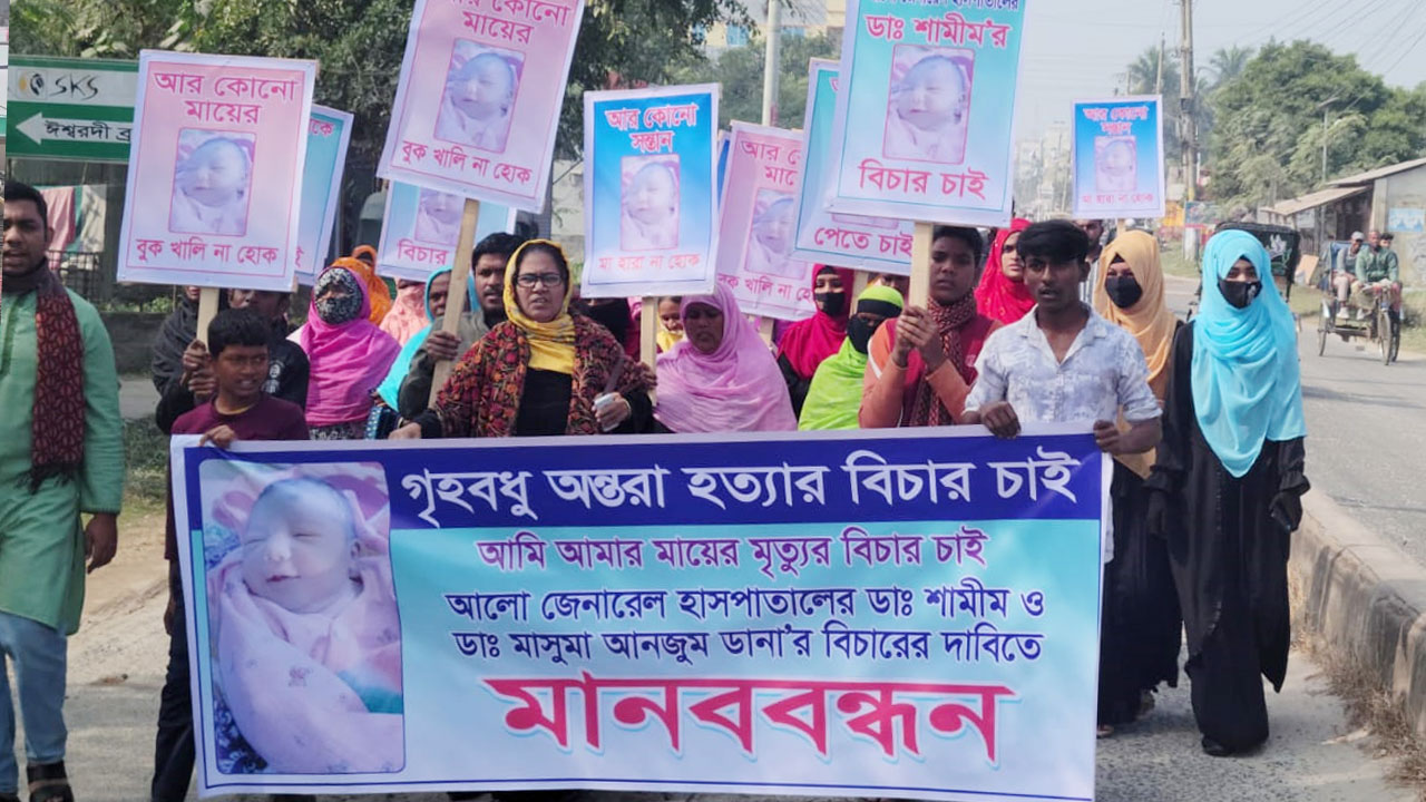 বুধবার (১০ জানুয়ারি) ঈশ্বরদী হাসপাতাল রোডে আলো জেনারেল হাসপাতালের সামনে এই মানববন্ধন ও বিক্ষোভের ঘটনা ঘটে।