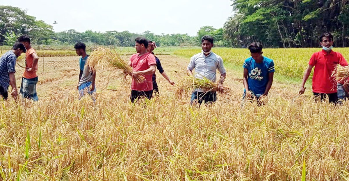 কৃষকের পাকা ধান কেটে দিল ছাত্রলীগ