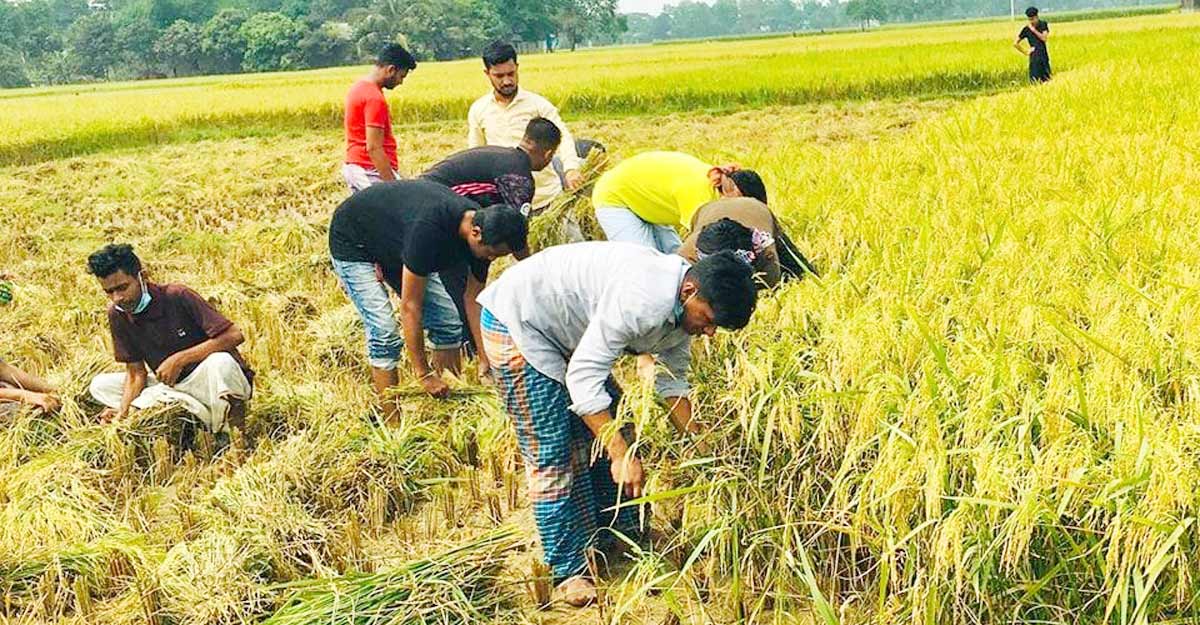 কৃষকের দেড় বিঘা জমির পাকা ধান কেটে দিলেন ছাত্রলীগ