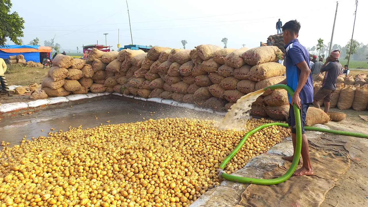 আলু ব্যবসায়ী নাজমুল হক বলেন, আমরা কৃষকদের কাছ থেকে আলু কিনে থাকি। এসব আলু পরিষ্কারের পর বস্তা করে যশোর, খুলনা, ঢাকাসহ বিভিন্ন স্থানে পাঠানো হয়। আমরা আলু কেনার পর শ্রমিক খরচ বাদে প্রতিবস্তায় ১৫ থেকে ২০ টাকা লাভে ব্যবসায়ীদের কাছে বিক্রি করি। সব খরচ হিসেব করার পর আলুর দাম নির্ধারণ করে বিক্রি করে। প্রতিদিন আমি ৬০০ থেকে ৭০০ বস্তা আলু বিভিন্ন অঞ্চলের ব্যবসায়ীদের কাছে বিক্রি করি। তবে আলুর আমদানি বাড়লে আলুর দাম কমে আসবে।