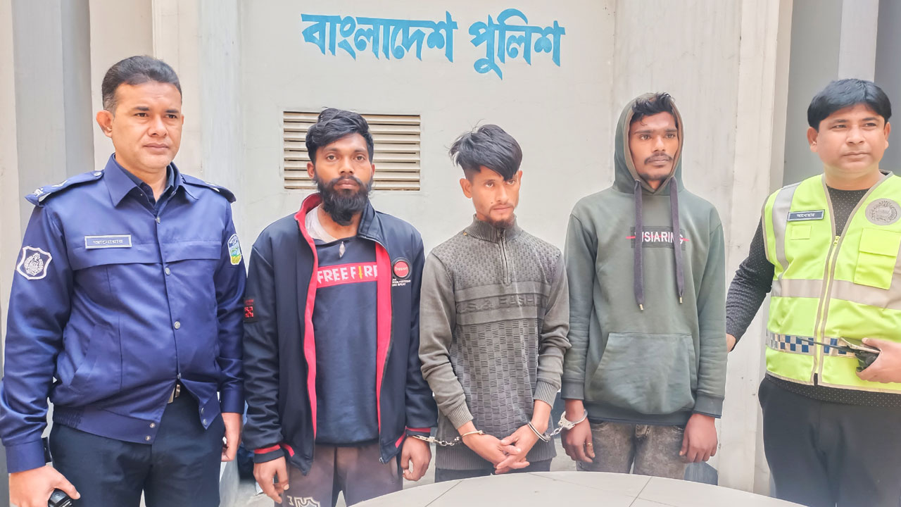 গ্রেপ্তারকৃতরা হলেন- মধ্য বাড়েরা এলাকার তোফায়েল আহমেদ নাছিম (২১) ও একই এলাকার পলাশ (২২) ও শাকিল (২৪)।