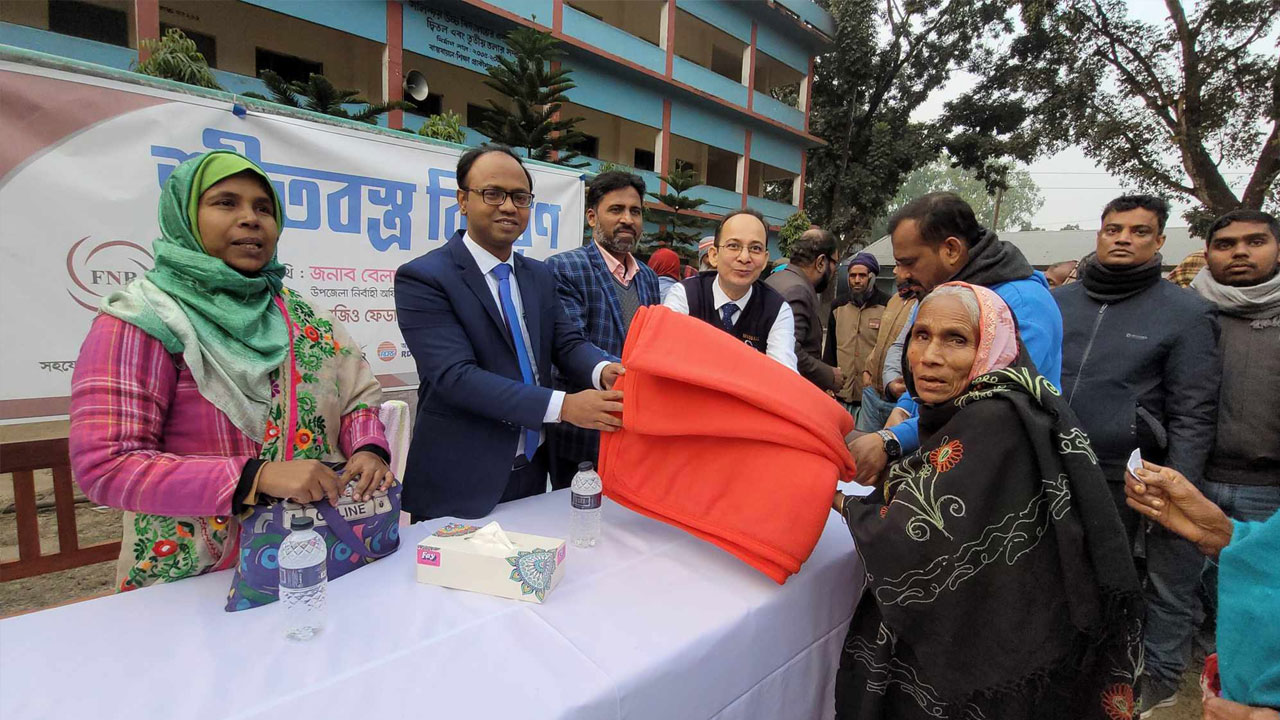 ঠাকুরগাঁওয়ে শীতার্ত মানুষের মাঝে কম্বল বিতরণ করল এফএনবি