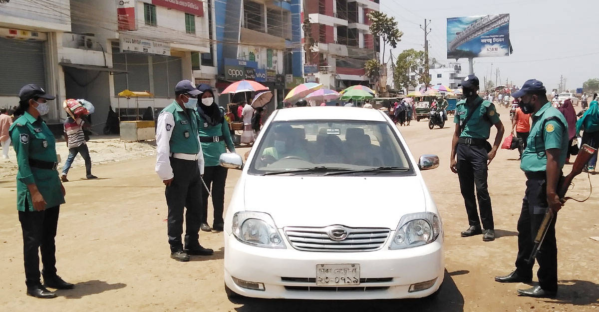 লকডাউন বাস্তবায়নে মাঠপর্যায়ে কাজ করছে পুলিশ