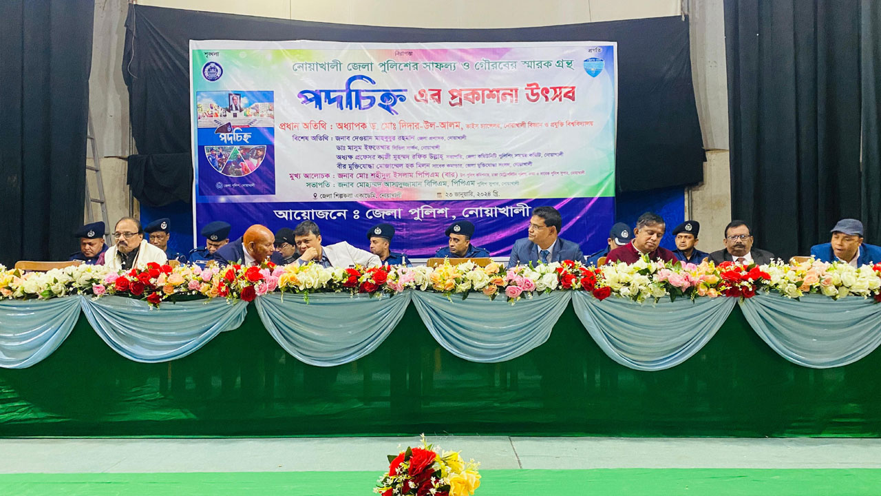 গতকাল দুপুরে নোয়াখালী জেলা শিল্পকলা একাডেমির মিলনায়তনে নোয়াখালী জেলা পুলিশের সাফল্য ও গৌরবের স্মারক গ্রন্থ ‘পদচিহ্ন’ এর প্রকাশনা উৎসবে প্রধান অতিথির বক্তব্যে এসব কথা বলেন নোয়াখালী বিজ্ঞান ও প্রযুক্তি বিশ্ববিদ্যালয়ের (নোবিপ্রবি) উপাচার্য অধ্যাপক ড. মো. দিদার-উল-আলম।