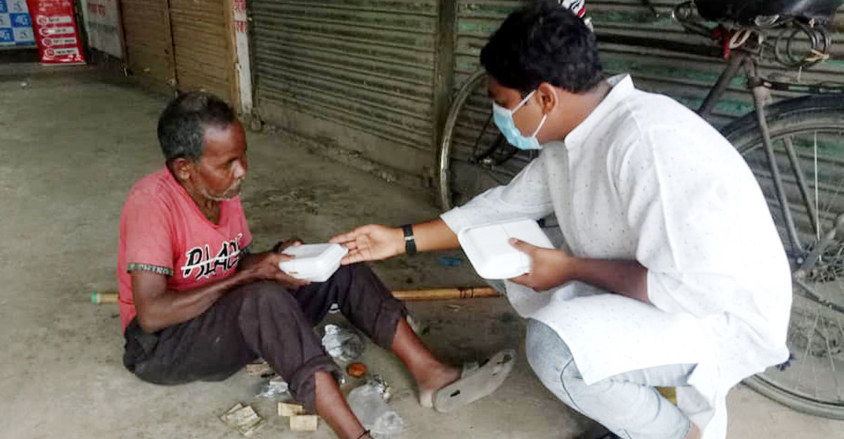 অসহায় এক ব্যক্তিকে খাবার দিচ্ছে জেলা ছাত্রলীগ