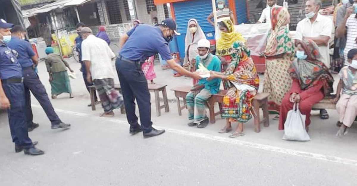 কর্মহীন হয়ে পড়া দরিদ্রদের ইফতারসামগ্রী দিচ্ছে পুলিশ