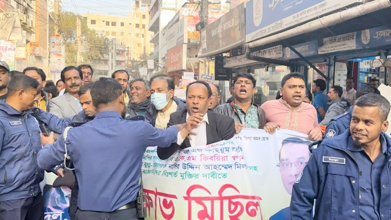 বিএনপির চেয়ারপার্সন বেগম খালেদা জিয়াসহ ফরিদপুরের কারাবন্দি সকল নেতৃবৃন্দের মুক্তির দাবিতে বিক্ষোভ মিছিল পুলিশের বাধায় সংক্ষিপ্ত করতে বাধ্য হয়েছেন বিএনপির নেতৃবৃন্দ।