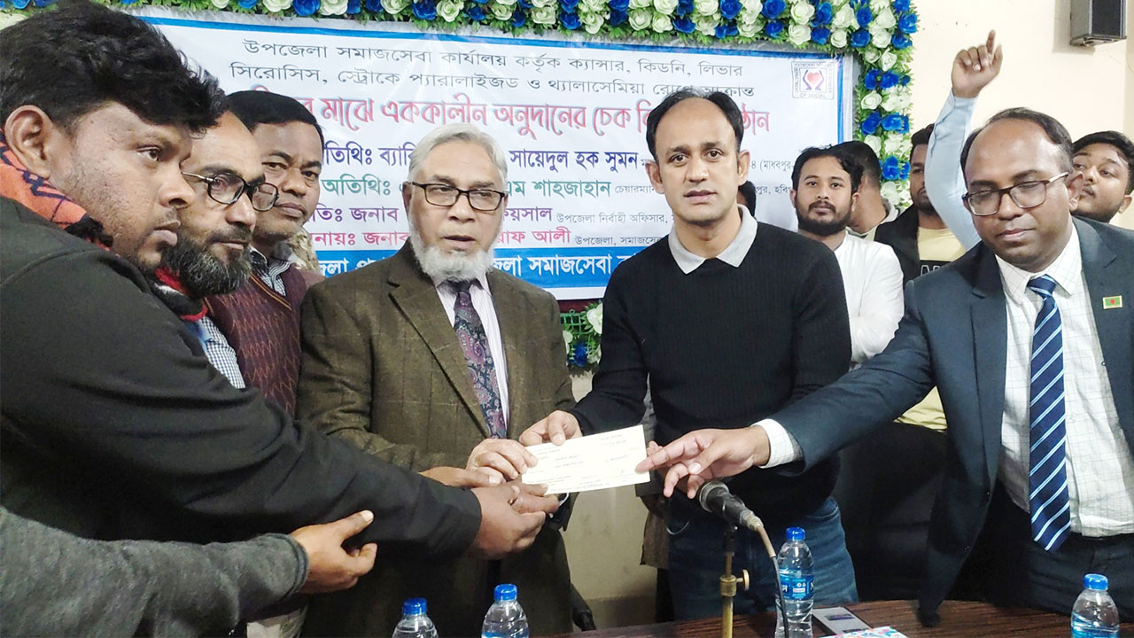 হবিগঞ্জে মাধবপুরে ক্যান্সার, কিডনি, লিভার সিরোসিস, স্ট্রোক, প্যারালাইজড, জন্মগত হৃদরোগ এবং থ্যালাসেমিয়া আক্রান্ত রোগীদের চিকিৎসা সহায়তায় সরকারের দেওয়া এককালীন ৫০ হাজার টাকার অনুদানের চেক বিতরণ করা হয়েছে।