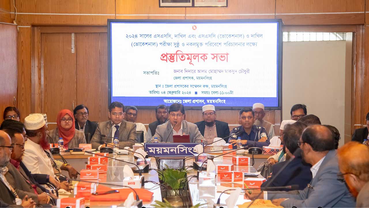 রোববার (৪ ফেব্রুয়ারি) ময়মনসিংহ জেলা প্রশাসকের সম্মেলন কক্ষে জেলায় ২০২৪ সালের এসএসসি, দাখিল এবং এসএসসি (ভোকেশনাল) ও দাখিল (ভোকেশনাল) পরীক্ষা সুষ্ঠু ও নকলমুক্ত পরিবেশে পরিচালনার লক্ষ্যে জেলা প্রশাসক দিদারে আলম মোহাম্মদ মাকসুদ চৌধুরীর সভাপতিত্বে প্রস্তুতিমূলক সভা অনুষ্ঠিত হয়।