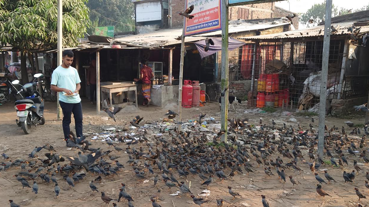 মুদি ব্যবসায়ী জাহিদুল ইসলাম ঢাকা পোস্টকে বলেন, ২০ বছরের বেশি সময় ধরে পাখিগুলো দেখে আসছি। ভোর সকালে হোটেল খুলতেই কোথা থেকে যেন চলে আসে। খাবার শেষে বেলা বাড়ার সঙ্গে সঙ্গে ওরা কোথায় যেন হারিয়ে যায়। পাখিগুলো মানুষের কোন ক্ষতি করে না। অনেক মানুষ সকালে পাখিগুলো দেখতে আসে। কেউ ভাজা দেয়, চাল দেয়, মুড়ি দেয়। তবে ওদের সবথেকে প্রিয় খাবার ভাজা। এখন প্রায় সারদিনই পাখির কলকাকলিতে বাজার মুখরিত থাকে।