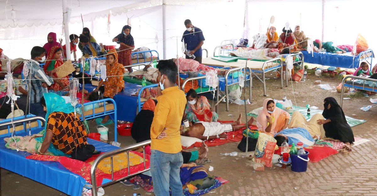 এদিকে ডায়রিয়ার প্রকোপ বেড়ে যাওয়ায় বিভাগের ৪০টি স্বাস্থ্যসেবা কেন্দ্রে চরম বেড সংকট দেখা দিয়েছে। ফলে গাছের নিচে, খোলা মাঠে সামিয়ানা টানিয়ে বা প্যান্ডেল করে অস্থায়ী হাসপাতাল করা হয়েছে। প্রতিদিন হাজার হাজার রোগী চিকিৎসা নিতে আসছেন। রাতের পর রাতও থাকতে হচ্ছে অনেককে।