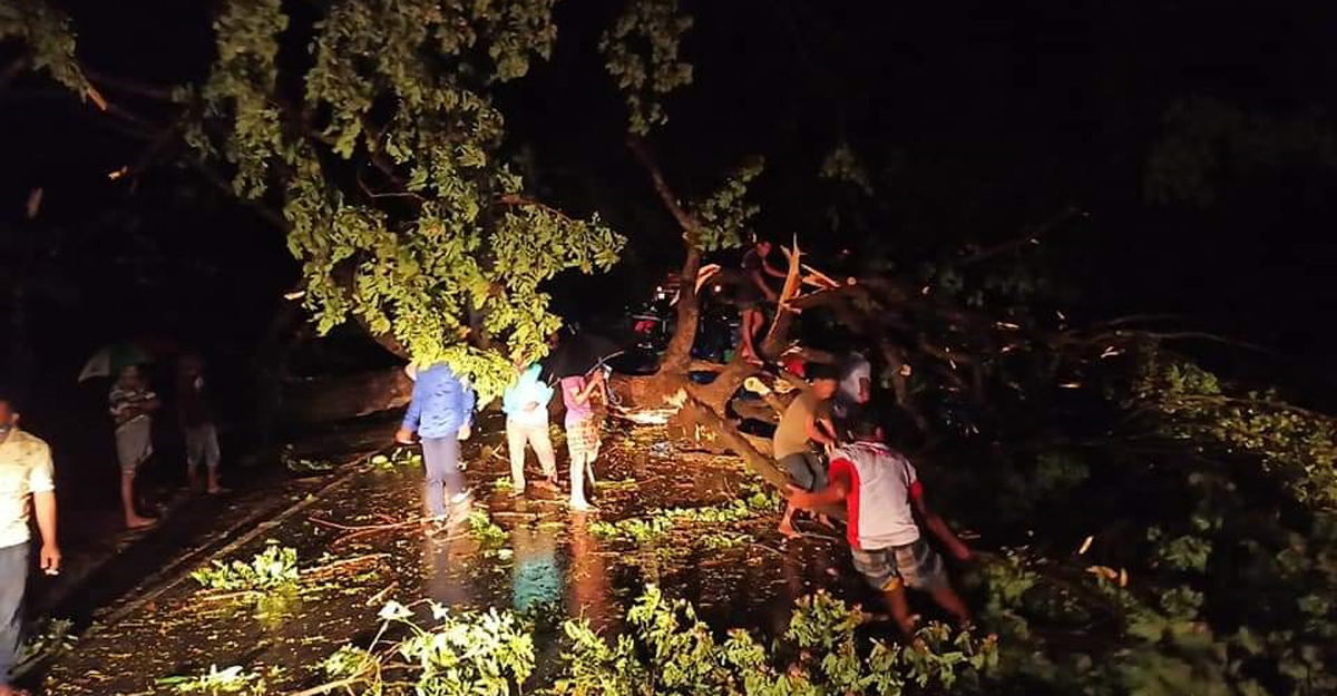 সিরাজগঞ্জে কালবৈশাখী ঝড়ে মহাসড়কে গাছ পড়ে যান চলাচল বন্ধ