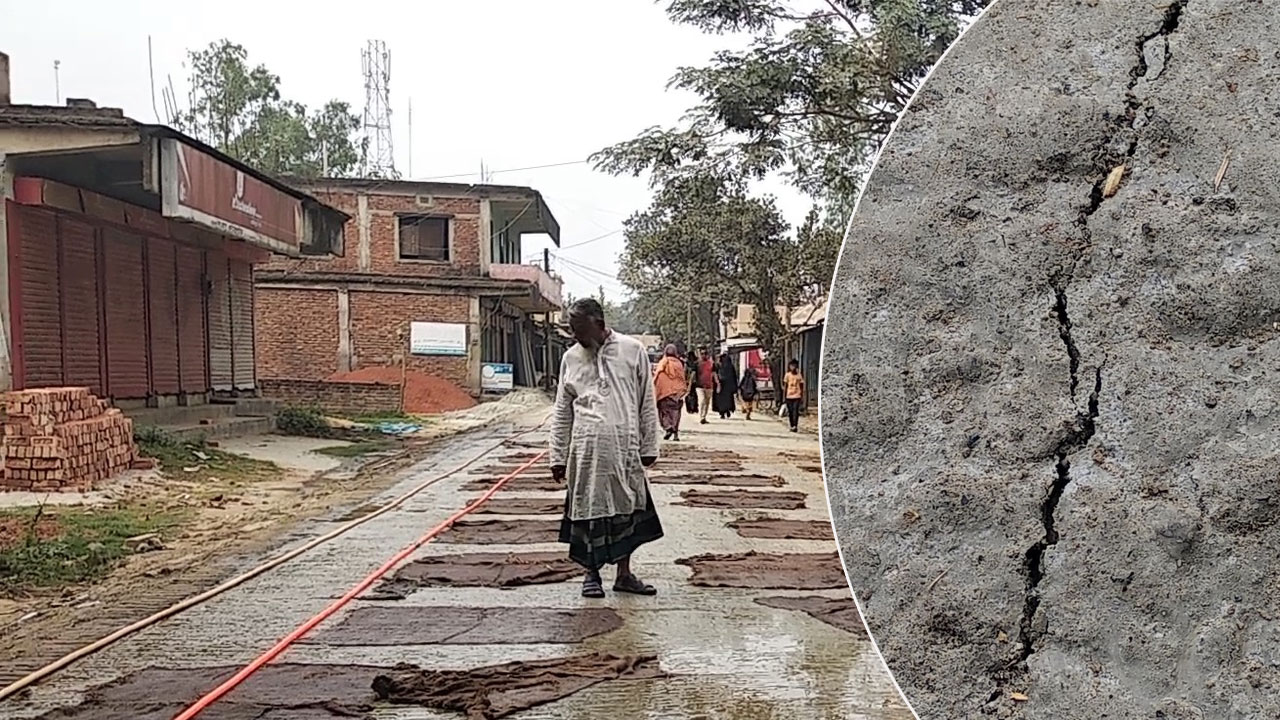 টাঙ্গাইলে সড়কে ঢালাইয়ের পরের দিনই ফাটল!