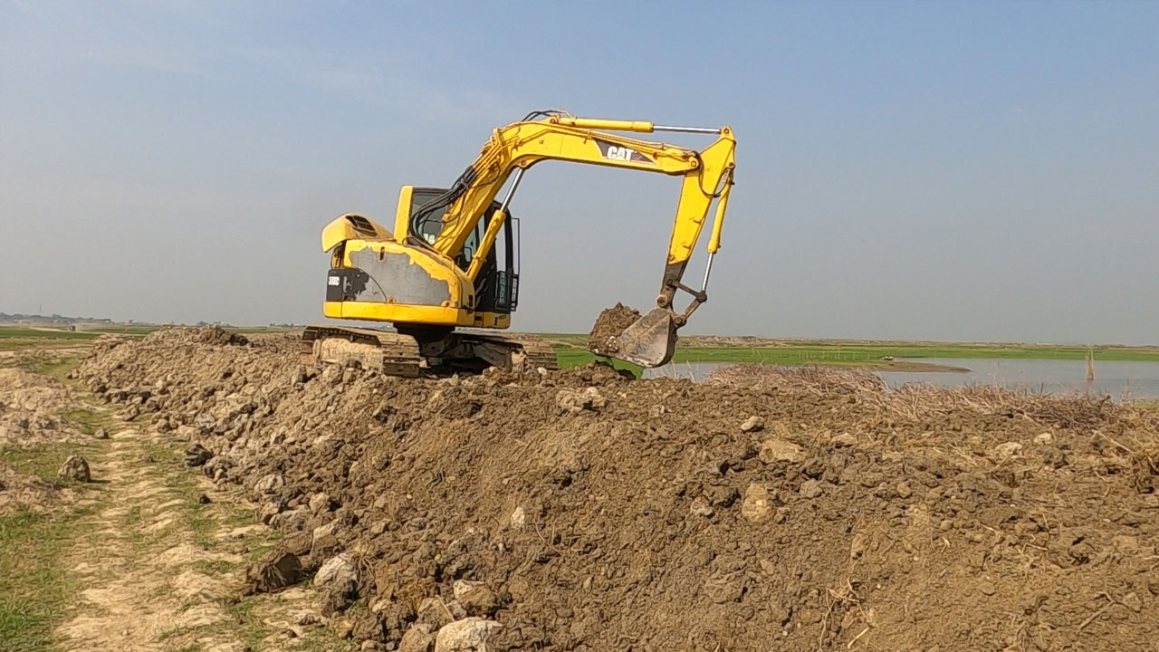 নেত্রকোণার হাওরে ফসল রক্ষা বাঁধের কাজে ধীরগতি, ফসলহানির শঙ্কা