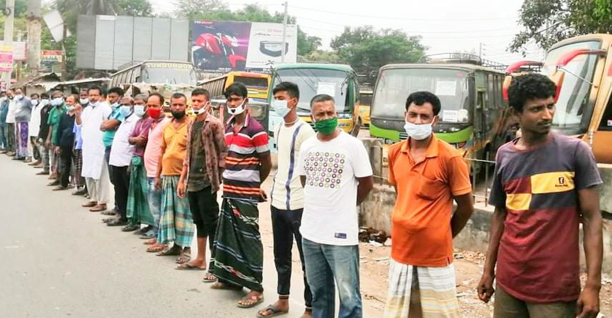 ত্রাণের দাবিতে রাস্তায় বাসশ্রমিকরা