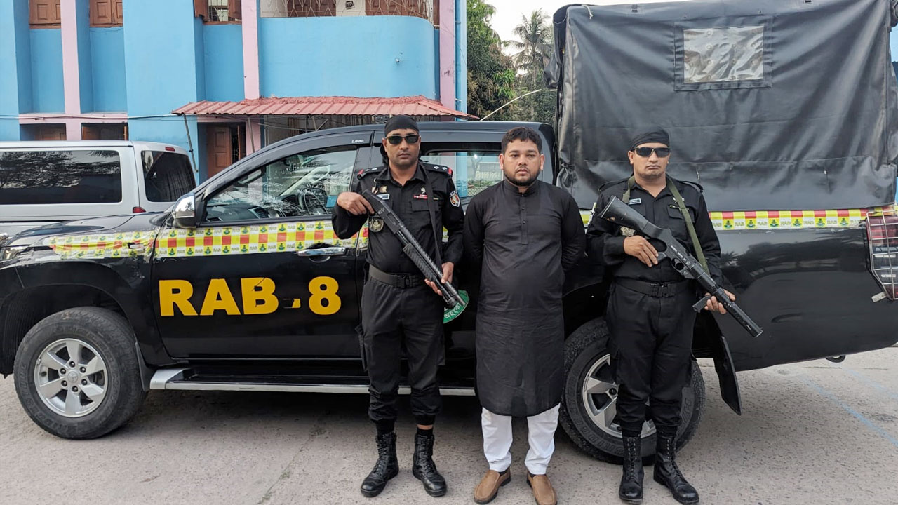 সোমবার (৫ মার্চ) বিকেলে পটুয়াখালীর পৌর শহরে অভিযান চালিয়ে তাকে গ্রেপ্তার করেন র্যাব-৮ এর সদস্যরা।