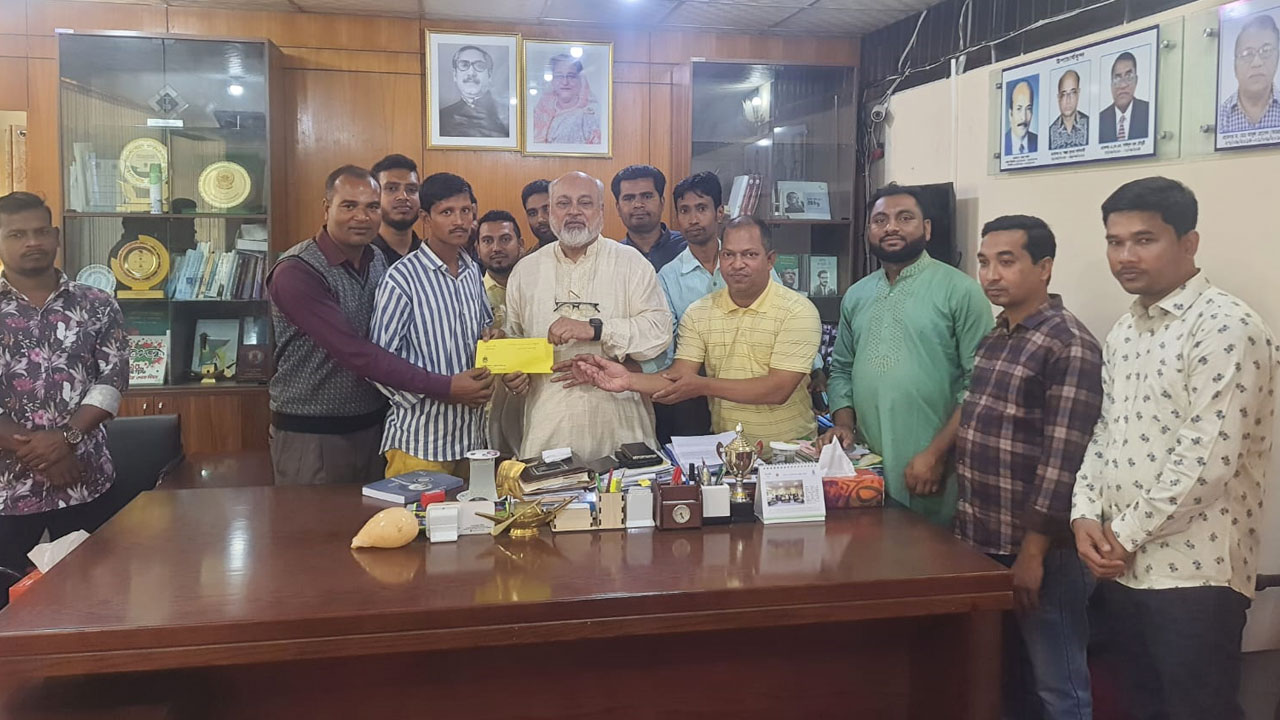 চেক দেওয়ার সময় বিশ্ববিদ্যালয়ের প্রক্টর অফিসের কর্মচারী আবদুল্লাহ আল মামুন, রেজিস্ট্রার শাখার এনায়েত হোসেন রাব্বি, পরিবহন শাখার আবদুল করিম, আকরাম হোসেনসহ বিভিন্ন শাখার কর্মচারীরা উপস্থিত ছিলেন।