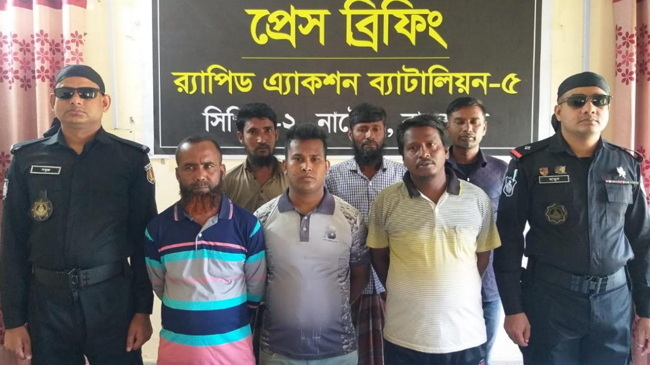 গ্রেপ্তাররা হলেন-সিংড়া উপজেলার সরকারপাড়া গ্রামের মো. আরিফুল ইসলাম (৩০), নিংগুইন উত্তরপাড়া গ্রামের মো. হাফিজ (৪০), চাঁদপুরের মো. মনসুর রহমান (৩৫), মো. বকুল খান (৪৭), বাসুয়াপাড়া গ্রামের মো. নজরুল ইসলাম (৪৫) ও মাদারীপুর এলাকার মো. কুদরত (৩৫)।