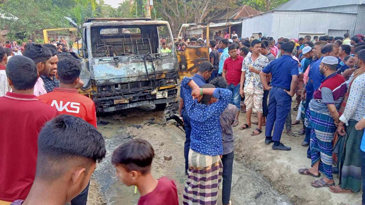 মাটিবাহী ট্রাকচাপায় শিশু নিহত, বিক্ষুব্ধ জনতার ট্রাকে আগুন