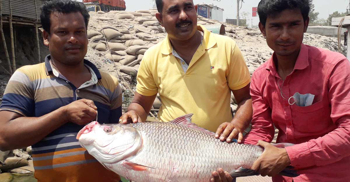 পদ্মা ও যমুনা নদীর মোহনায় জেলের জালে ধরা পড়ল ১৭ কেজির কাতল