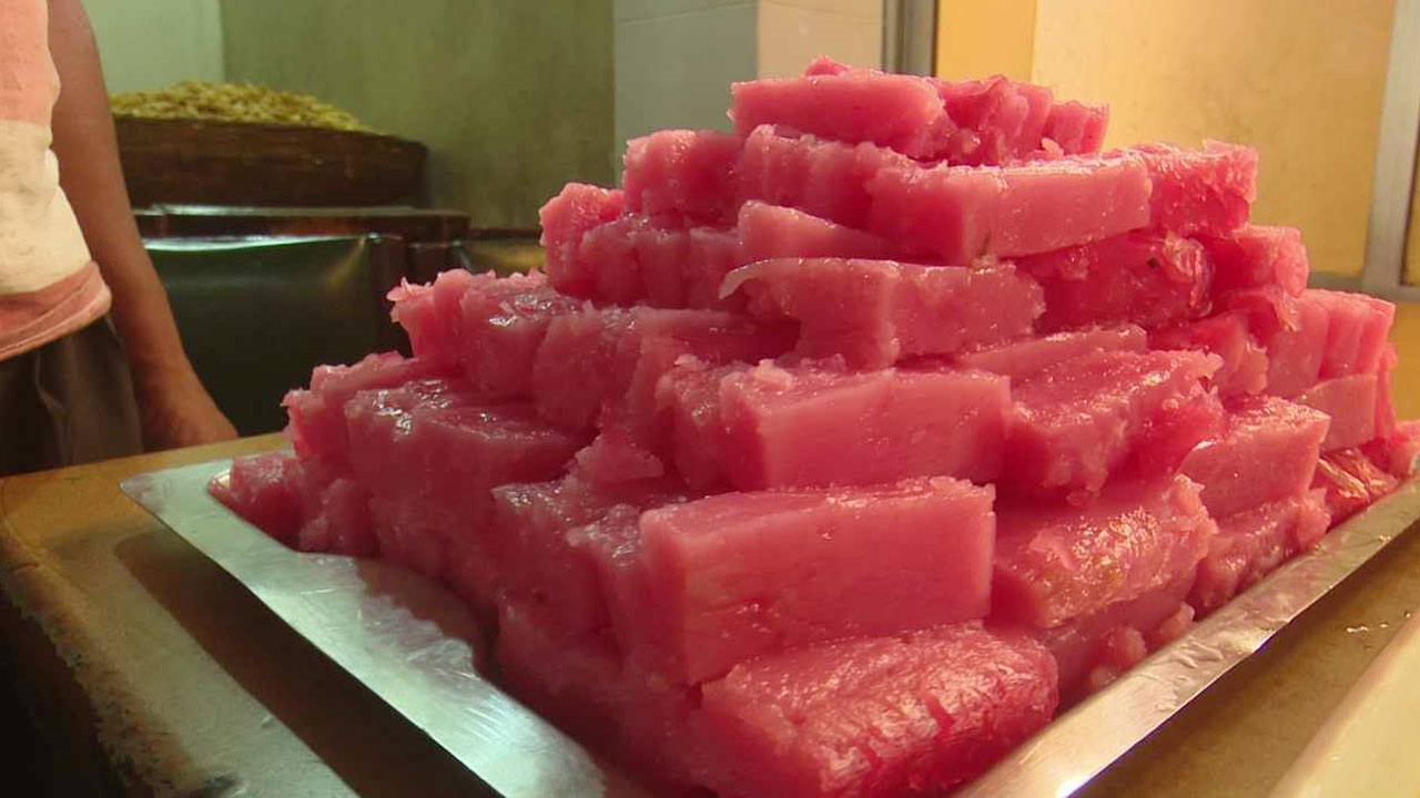সেখানে কথা বলে জানা যায়, মৌবন হোটেলের কারিগরদের নিপুণ হাতের ছোঁয়ায় ময়দা, চিনি, শিরা, অন্যান্য খাদ্য উপকরণ দ্বারা তৈরি হয় এই হালুয়ার ছানা। পরে রুহ আফজা মিশিয়ে অন্য পাত্রে রেখে ঠান্ডা করলেই রুপ নেয় টস টসে লাল রঙের আলতো জমাট বাঁধা হলুয়া। এই জমাট বাঁধা খামির থেকে পিচ পিচ করে কেটে বিক্রির উপযোগী করা হয় রোজাদারদের ইফতারের জন্য। প্রতি পিচ ১০ টাকা করে ছাড়াও ২৬০ টাকা কেজি দরে বিক্রি হয় এই হালুয়া। রোজাদারদের ইফতার পার্টিও বেশ জনপ্রিয় এই হালুয়াটি।