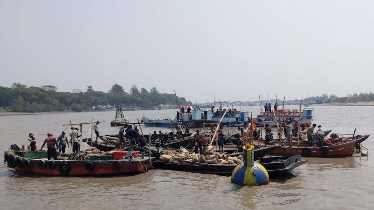 বাগেরহাটে ডুবে যাওয়া ১৮০ মেট্রিক টন চাল উত্তোলন শুরু