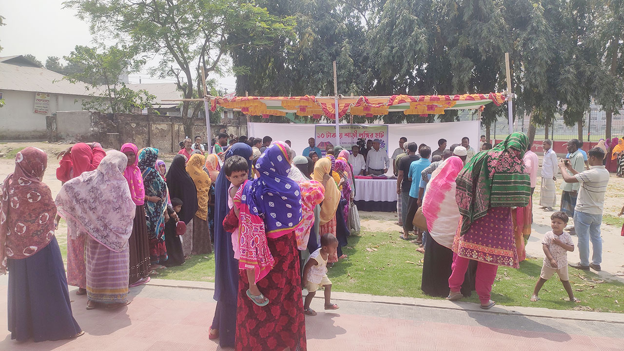 কুড়িগ্রামে দরিদ্র, অসহায় ও দুঃস্থ মানুষের মাঝে ১০ টাকার শাড়ি-লুঙ্গির হাটের আয়োজন করেছে ফাইট আনটিল লাইট (ফুল) নামের একটি জনকল্যাণমূলক সামাজিক সংগঠন।