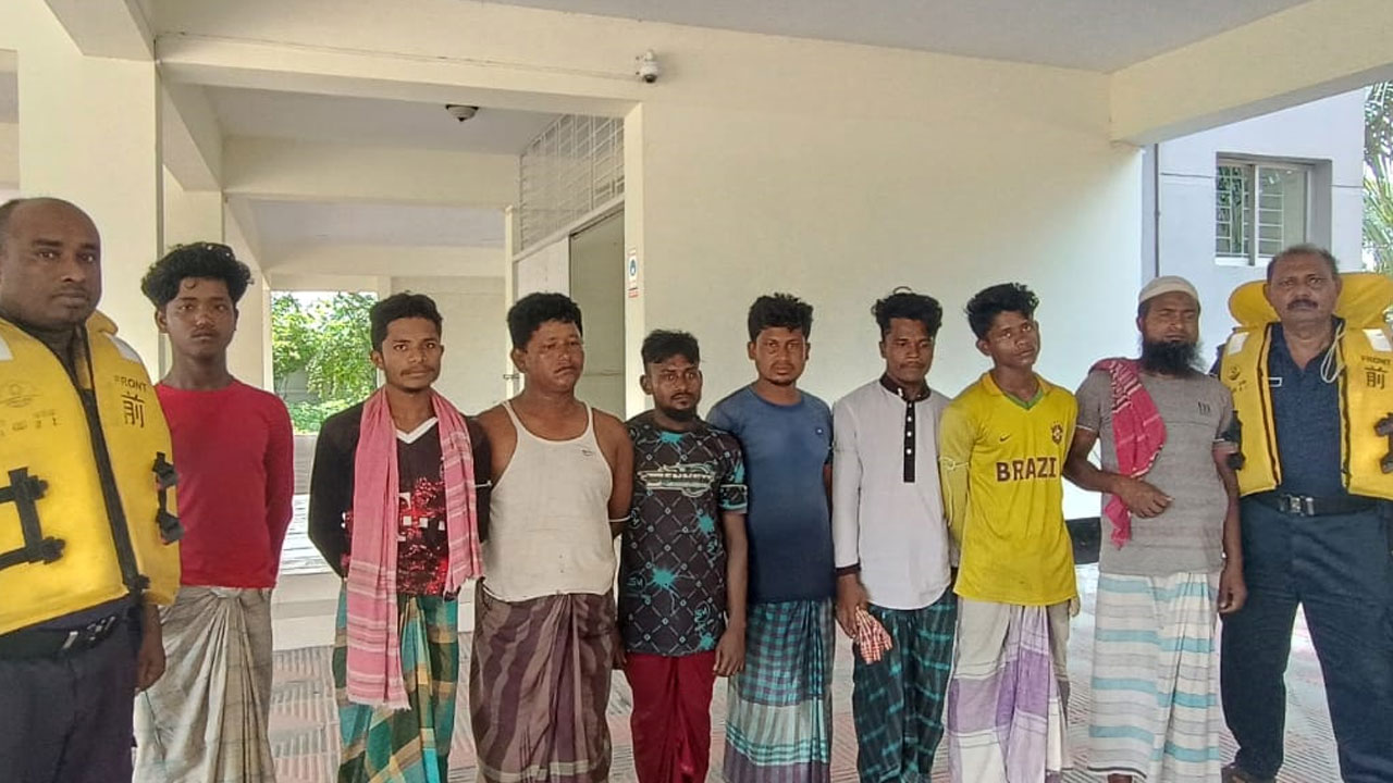 আটক জেলেরা হলেন হাফেজ চানী (৩২), সবুজ মাল (১৯), রাজিব মাল (২০), ফারুক মাল (৩৫), নয়ন (১৮), শান্ত মাল (১২), রুবেল গাজী (১৯), শুকুর জমাদার (২৩)। এদের বাড়ি চাঁদপুর সদর উপজেলা পশ্চিম জাফরাবাদ।