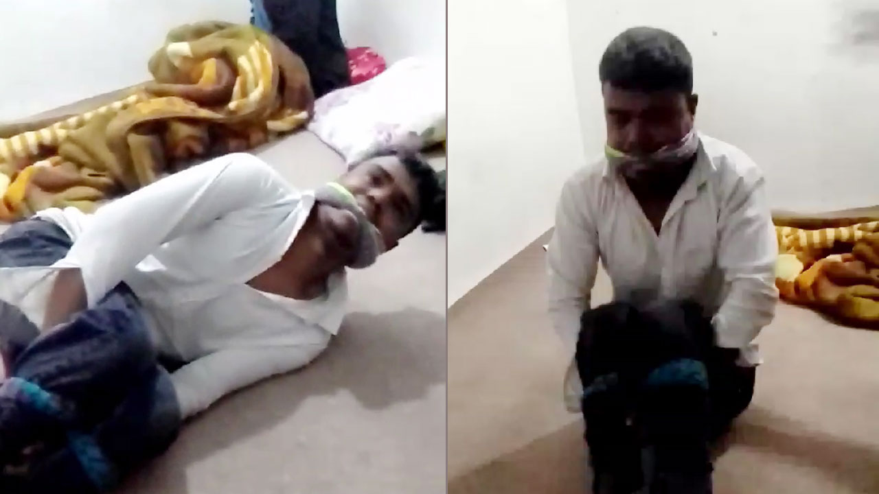 পরনে সাদা শার্ট ও প্যান্ট। দুই পা কাপড় দিয়ে বাঁধার পর পায়ের নীচ দিয়ে বাঁধা হয়েছে দুই হাতও। আর একই ভাবে বাঁধা হয়েছে মুখ। এরপর মারা হয় চড়-থাপ্পড়। তখনই মেঝেতে লুটে পড়েন রুবেল হোসেন নামে এক যুবক। তারপর তাকে লাঠি দিয়ে আরও মারধর করা হয়। মারধর করায় ওই যুবক কথা বলতে চাইলেও মুখ বাঁধার কারণে কিছুই বলতে পারছিলেন না। শুধু গোঙ্গানির আওয়াজ হচ্ছিল।