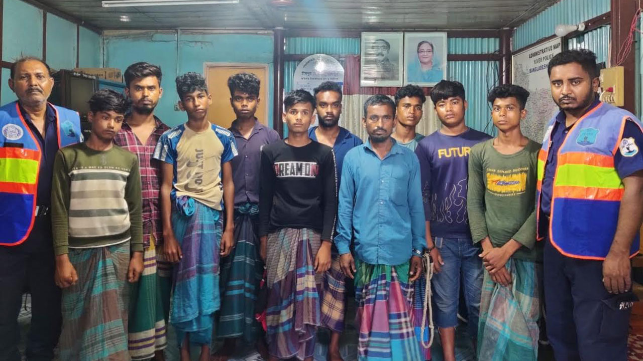 আটক জেলেরা হলেন- আনোয়ার হোসেন (৩৫), আব্দুল খালেক (১৯), মো. নিরব (১৫), মো. বিল্লাল হোসেন (১৪), আব্দুর রকমান (১২), মো. হাসান (২০), মো. সোহাগ (১৮), মো. জলিল (২১), মো. আব্দুস সোবাহান (১২) ও মো. ওয়াসিম (১৪)। এদের বাড়ি চাঁদপুরের মতলব উত্তর উপজেলা এবং শরীয়তপুর জেলার বিভিন্ন এলাকায়।