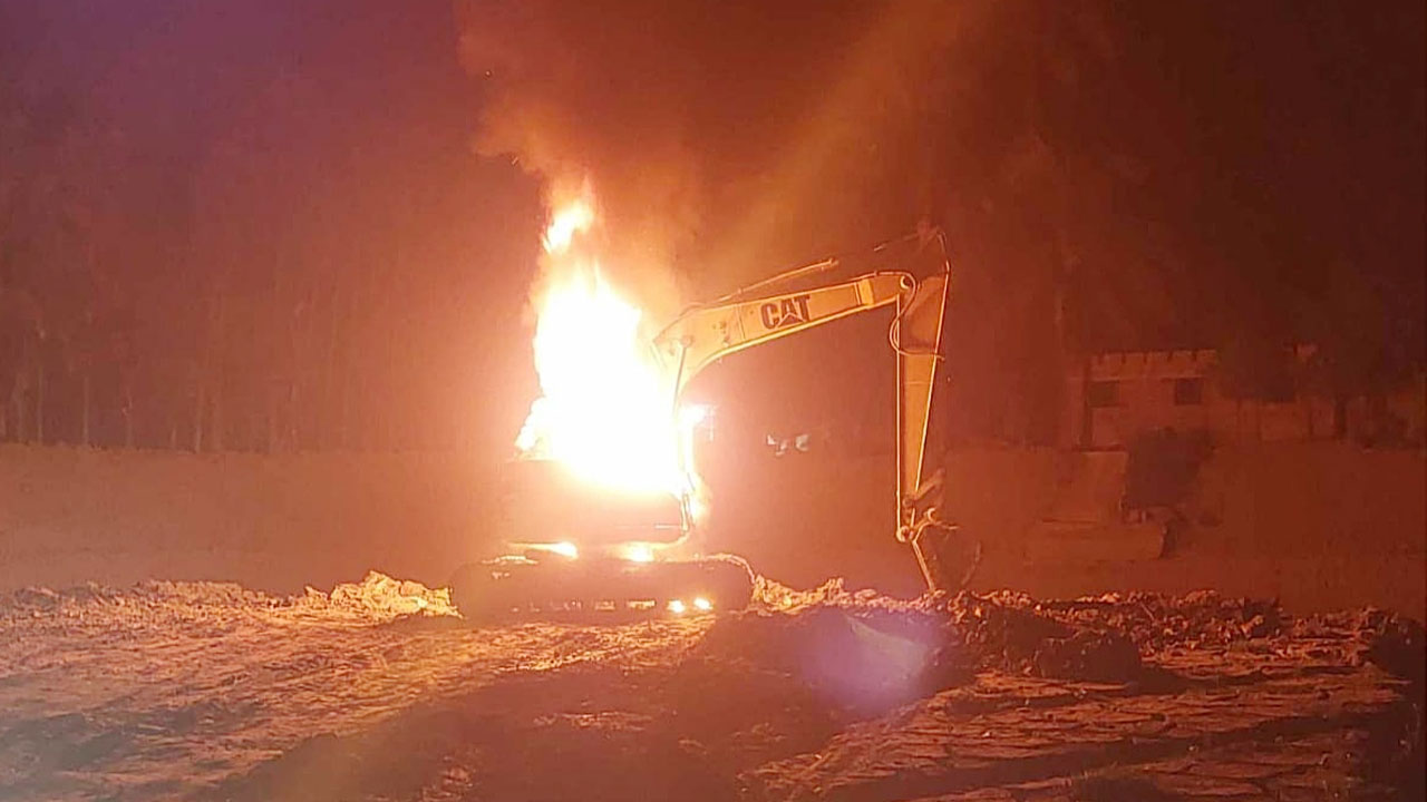 রাতের আঁধারে পুকুর খনন, ভেকু মেশিনে আগুন দিল দুর্বৃত্তরা