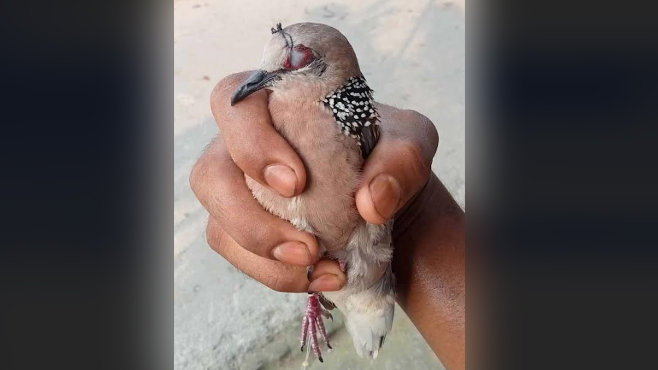 জীবিত ঘুঘুর চোখ সেলাই করে ফাঁদ পেতে পাখি শিকার