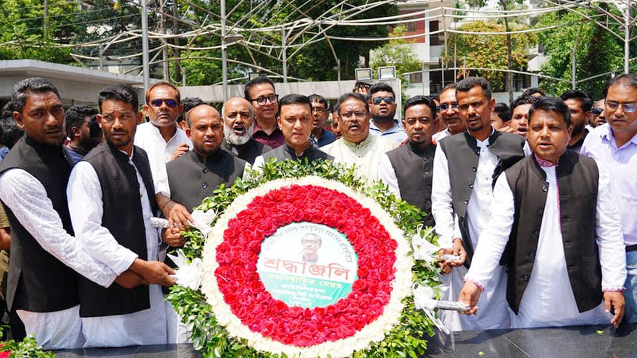 বৃহস্পতিবার (৪ এপ্রিল) দুপুরে রাজধানীর ধানমন্ডি ৩২ নম্বরে বঙ্গবন্ধুর প্রতিকৃতিতে শ্রদ্ধা জানান তারা। পরে বঙ্গবন্ধুর রুহের মাগফিরাত কামনায় দোয়া ও মোনাজাত করা হয়।