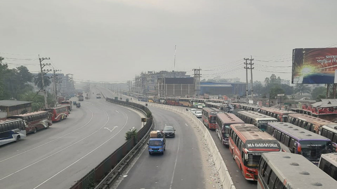 বুধবার সরেজমিনে গিয়ে দেখা যায়, গাজীপুরের চন্দ্রা ত্রিমোড় এলাকায় কোনো যানজট কিংবা ভোগান্তি দেখা যায়নি। মহাসড়কে যাত্রীর তুলনায় বিপুল পরিমাণ গাড়ি রয়েছে। পরিবহন শ্রমিকরা যাত্রীদের ডেকে ডেকে গাড়িতে উঠানোর চেষ্টা করছে। অন্যান্য দিনে অতিরিক্ত ভাড়া নিলেও এদিন তা দেখা যায়নি।
