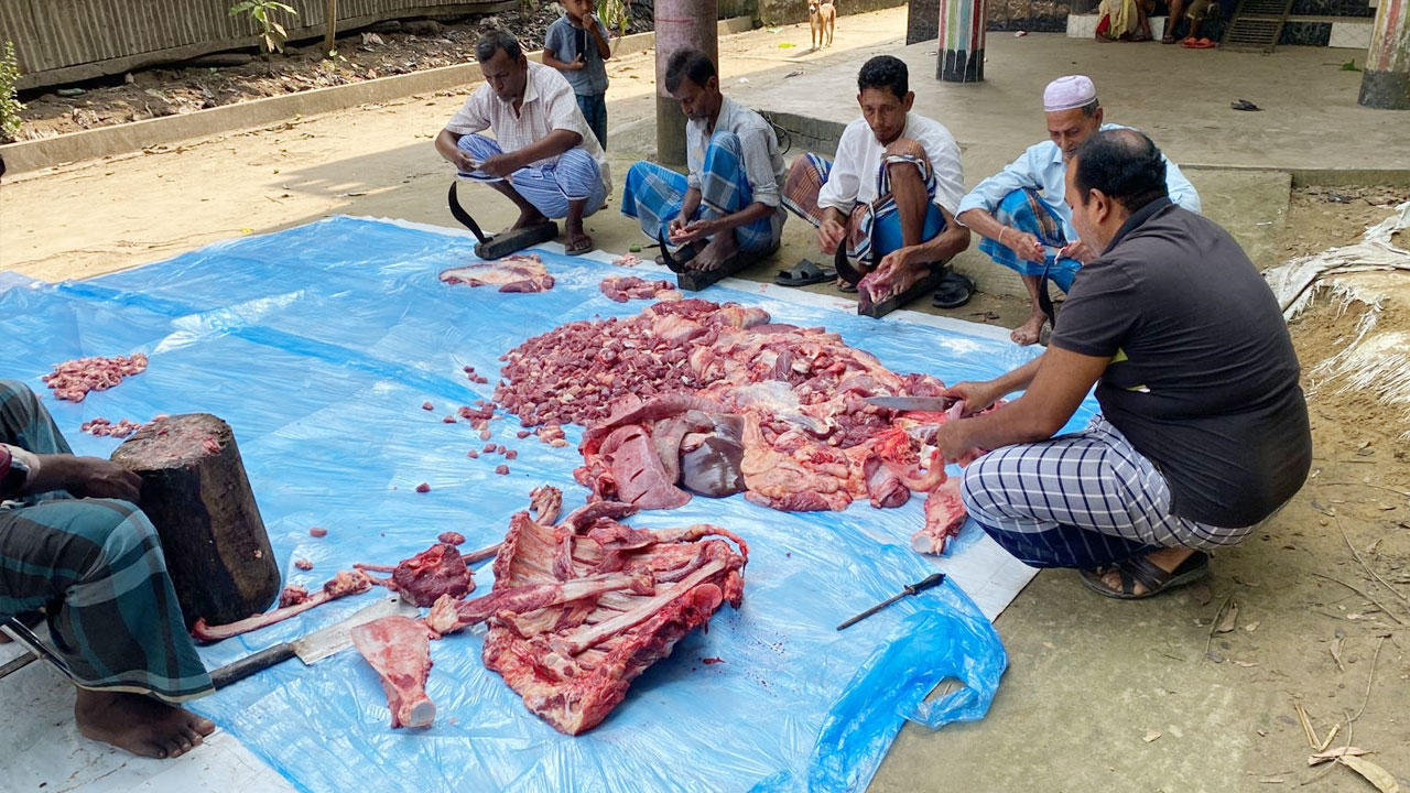 জানা যায়, ফজরের খাওয়ার পরই শুরু হয় গরু জবেহ। আনন্দে মুখরিত হয়ে ওঠে পাড়া-মহল্লা। রাস্তার পাশে দেখা যায় মানুষের জটলা। জায়গায় জায়গায় সাজানো থাকে গোশতের পসরা। এভাবে গরু কিনে ঈদের পূর্ব মুহূর্তে কমদামে গোশত ভাগাভাগি করে নিয়ে অনেক খুশি নিম্ন ও মধ্যবিত্ত আয়ের মানুষ।