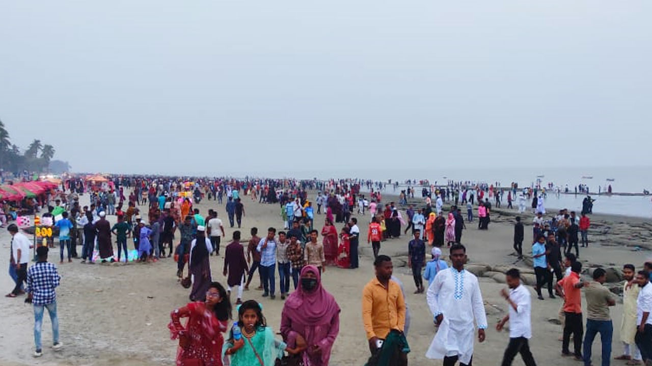 কুয়াকাটা সৈকতে ঈদের আনন্দে মেতেছেন পর্যটকরা