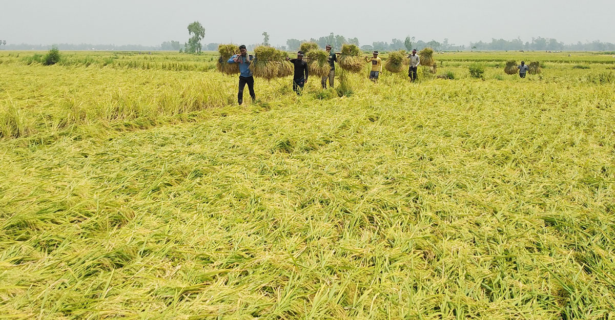 নওগাঁয় শ্রমিক সংকটে মাঠেই ঝরছে কৃষকের ধান