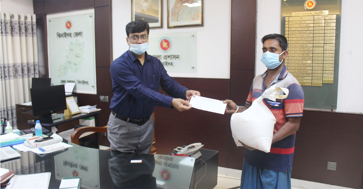 রোববার আবদুল করিমকে জেলা প্রাশাসকের কার্যালয় থেকে প্রধানমন্ত্রীর উপহার ২০ কেজি চাল ও পাঁচ হাজার টাকা প্রদান করেন ঝিনাইদহ জেলা প্রশাসক।