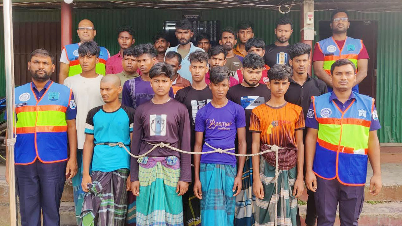 আটক জেলেরা হলেন- মো. খোকন খাঁ (৩৫), মো. মাইনুদ্দিন ছৈয়াল (২৭), মাসুদ তালুকদার (২৮), রবিউল হোসেন ব্যাপারী (২১), আবুল কালাম হোসেন তাঁতী (১৯), ফারুক গাজী (২৬), আবু তাহের তফাদ্দার (৩৪), মো. নিরব ব্যাপারী (১৯), মোমিন ব্যাপারী (১৯), সবুজ হাওলাদার (১৯), মো. ভাসানী (২৬), শরীফ ঢালী (২১), মো. কালু বকাউল (১৯), শরিফুল ইসলাম ব্যাপারী প্রকাশ তাহের (৩২), মহসীন মাঝি (২০), মো. রিফাত শেখ (২২), শাকিল ব্যাপারী (২০), মো. শাহীন ব্যাপারী (১৩), রাকিব হোসেন মাল (১৪), মো. শিপন গাজী (১২)। তাদের বাড়ি চাঁদপুর ও শরীয়তপুর জেলার বিভিন্ন স্থানে।