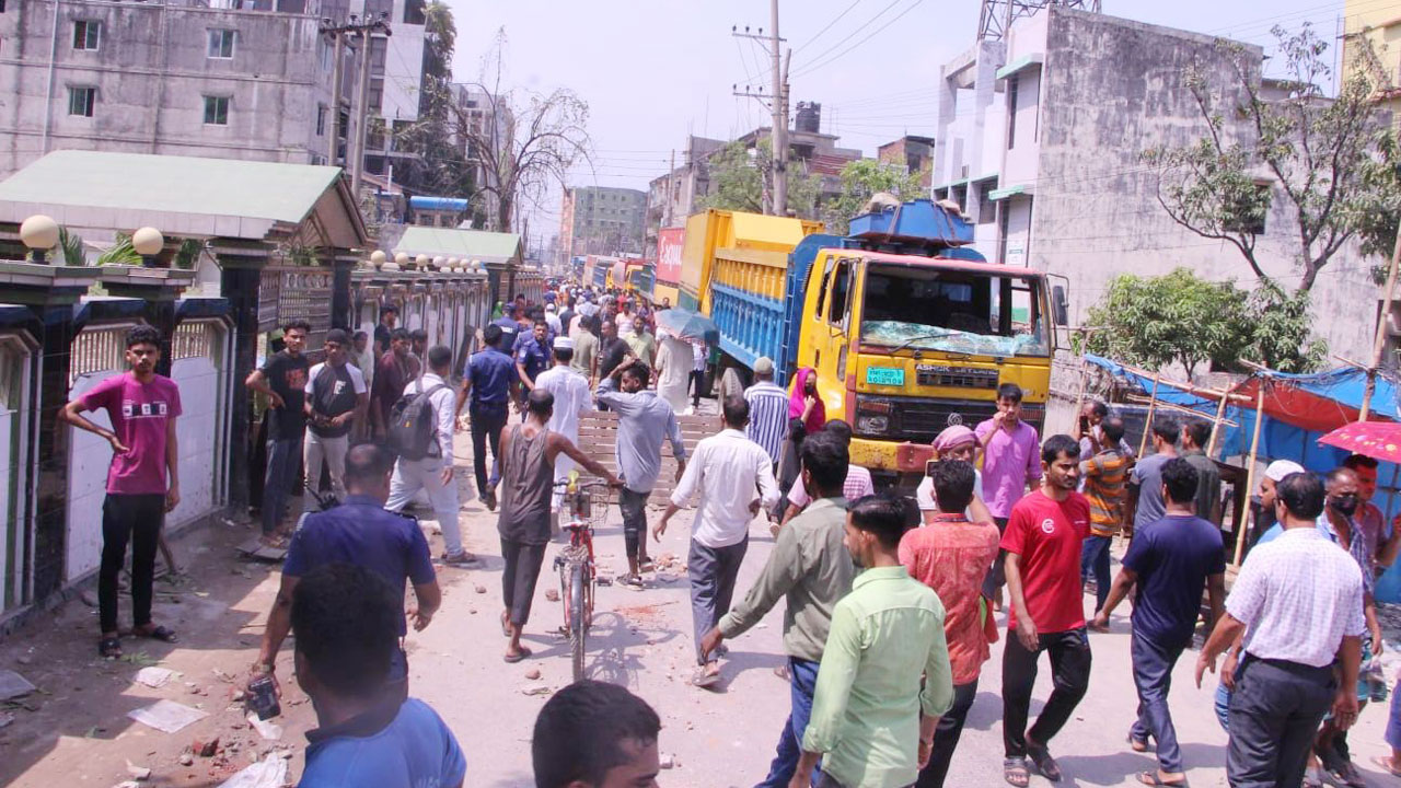 বকেয়া বেতনের দাবিতে নারায়ণগঞ্জে সড়ক অবরোধ, পুলিশ-শ্রমিক সংঘর্ষ