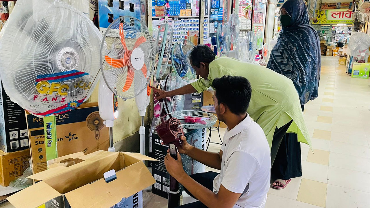 শ্রাবন্তী চৌধুরী নামে আরেক ক্রেতা বলেন, সবদিক থেকে আমরা সাধারণ মানুষ একটি অস্বাভাবিক অবস্থার মধ্যে আছি। এতো গরমে বাসায় থাকার উপায় নেই। দশমাস আগে যে ফ্যান কিনেছি সেটা এখন ৪০০ টাকা বেশি। মনে হচ্ছে দোকানিরা সুযোগ বুঝেই ইচ্ছে মতো দাম নিচ্ছে। তারপরও নিরুপায় হয়ে কিনতে হচ্ছে।