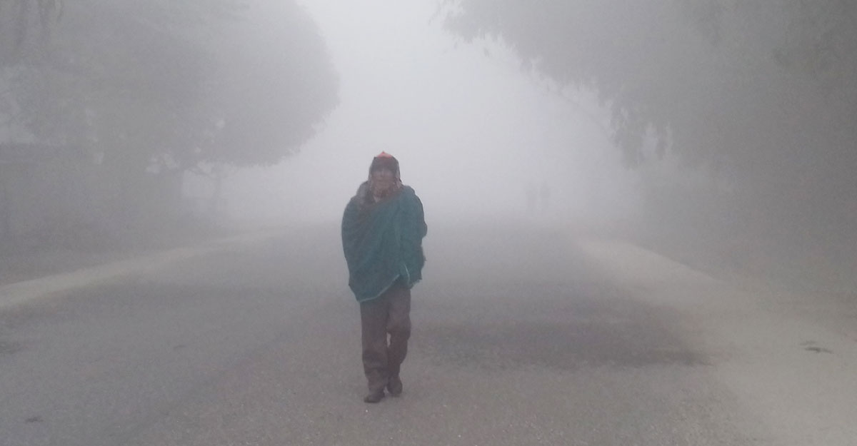 ঘন কুয়াশায় ঢাকা পড়েছে চারদিক