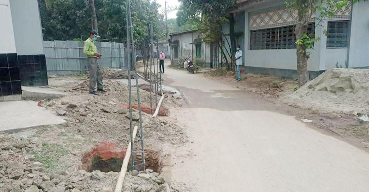 সরেজমিনে দেখা যায়, পাকা রাস্তার দক্ষিণ দিকের ইন্ড এজিং কেটে ফেলে পিলারের বেইস ঢালাই দেওয়া হয়েছে। পাকা রাস্তা কেটে নির্মাণ করা ঢালাইয়ের ওপর কলাম নির্মাণের শার্টারিং করা হচ্ছে।
