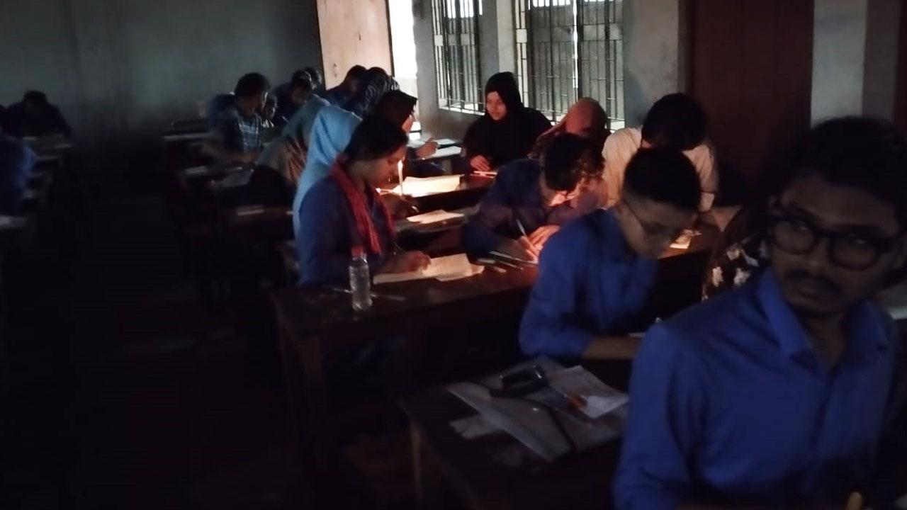 মোমবাতি জ্বালিয়ে পরীক্ষা দিলেন শিক্ষার্থীরা