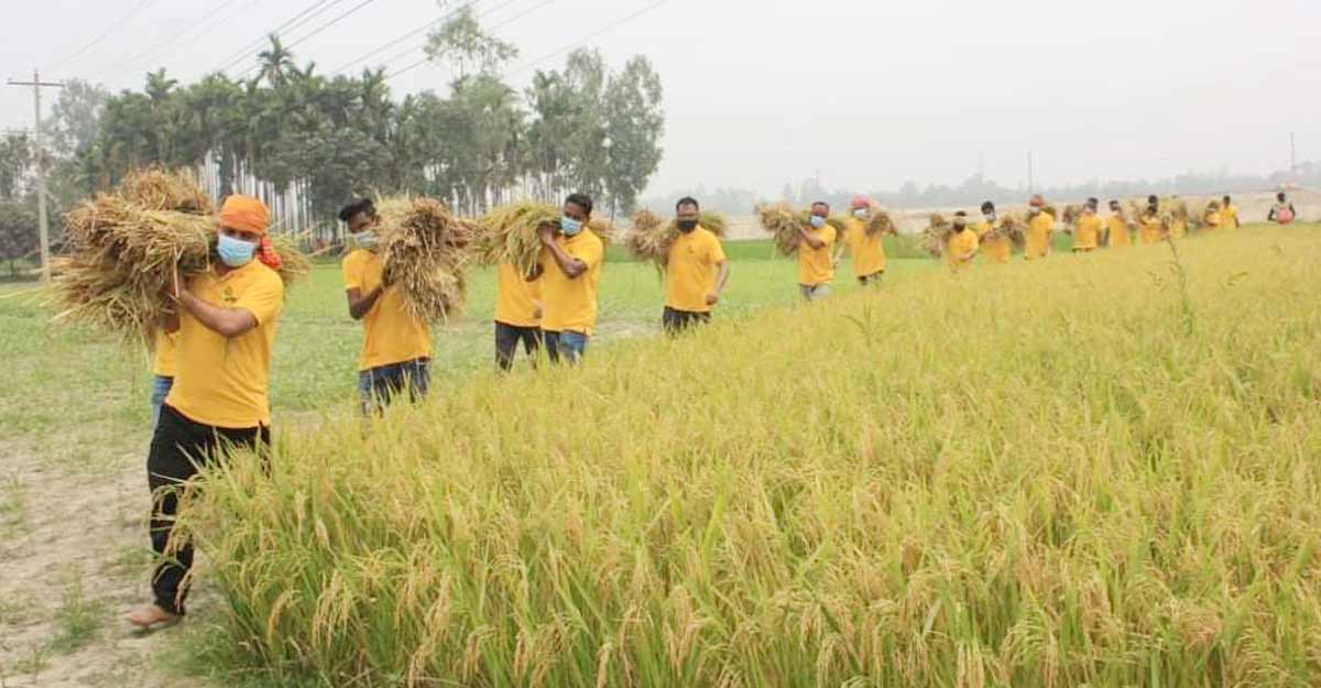 কৃষকের ধান কেটে বাড়িতে পৌঁছে দিল ছাত্রলীগ