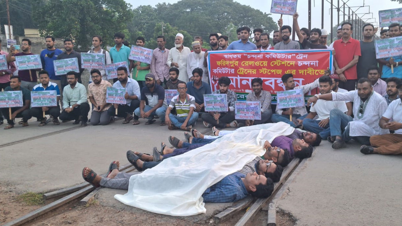 ফরিদপুরে কমিউটার ট্রেনের স্টপেজ দাবিতে ৪৮ ঘণ্টার আল্টিমেটাম