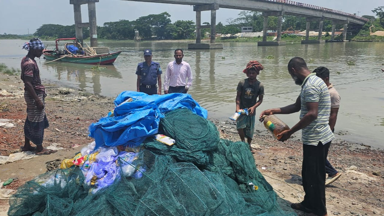 মঙ্গলবার (১৪ মে) সকালে উপজেলার দাসের জঙ্গল বাজারে জালগুলো জব্দ করা হয়।