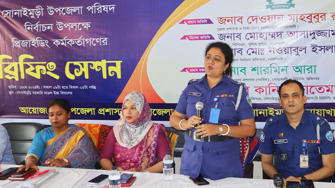 বৃহস্পতিবার (১৬ মে) দুপুরে সোনাইমুড়ীতে উপজেলা পরিষদের নির্বাচন উপলক্ষ্যে প্রিজাইডিং কর্মকর্তাদের ব্রিফিং সেশনে এসব কথা বলেন অতিরিক্ত পুলিশ সুপার (প্রশাসন ও অর্থ) বিজয়া সেন।