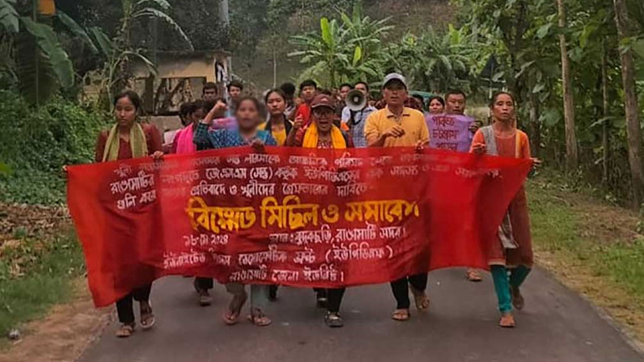 রাঙামাটি সদর উপজেলার কুতুকছড়িতে হত্যাকারীদের গ্রেপ্তার ও শাস্তির দাবিতে ইউপিডিএফ বিক্ষোভ মিছিল ও সমাবেশ করেছে।