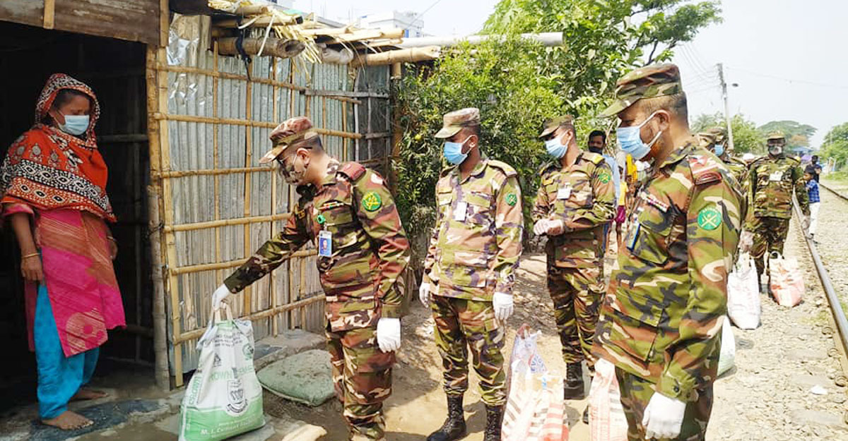 তবে কোনো তালিকা ধরে নয়, চলতি পথে যখন যেখানে অসহায় মানুষের দেখা মিলছে, সেখানেই দাঁড়িয়ে খাদ্য সহায়তা তুলে দিয়েছেন সেনাসদস্যরা। মহামারিতে এই মানবিক কর্মকাণ্ড পরিচালনা করেছে ট্রেনিং অ্যান্ড ডকট্রিন কমান্ড-আর্টডকের অধীনস্থ বাংলাদেশ ইনফ্যান্ট্রি রেজিমেন্টাল সেন্টার।